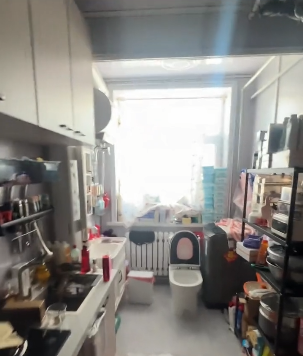 旁边甚至安装上了马桶、洗衣机